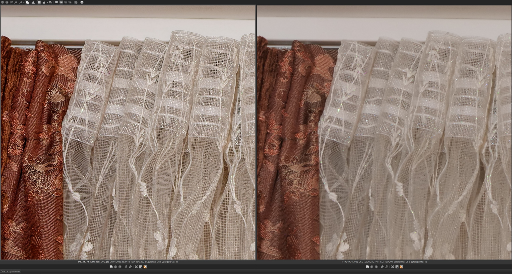 При обработке в DxO не использовались какие-либо дополнительные обработки, кроме переключения типов демозаики и шумоподавления.